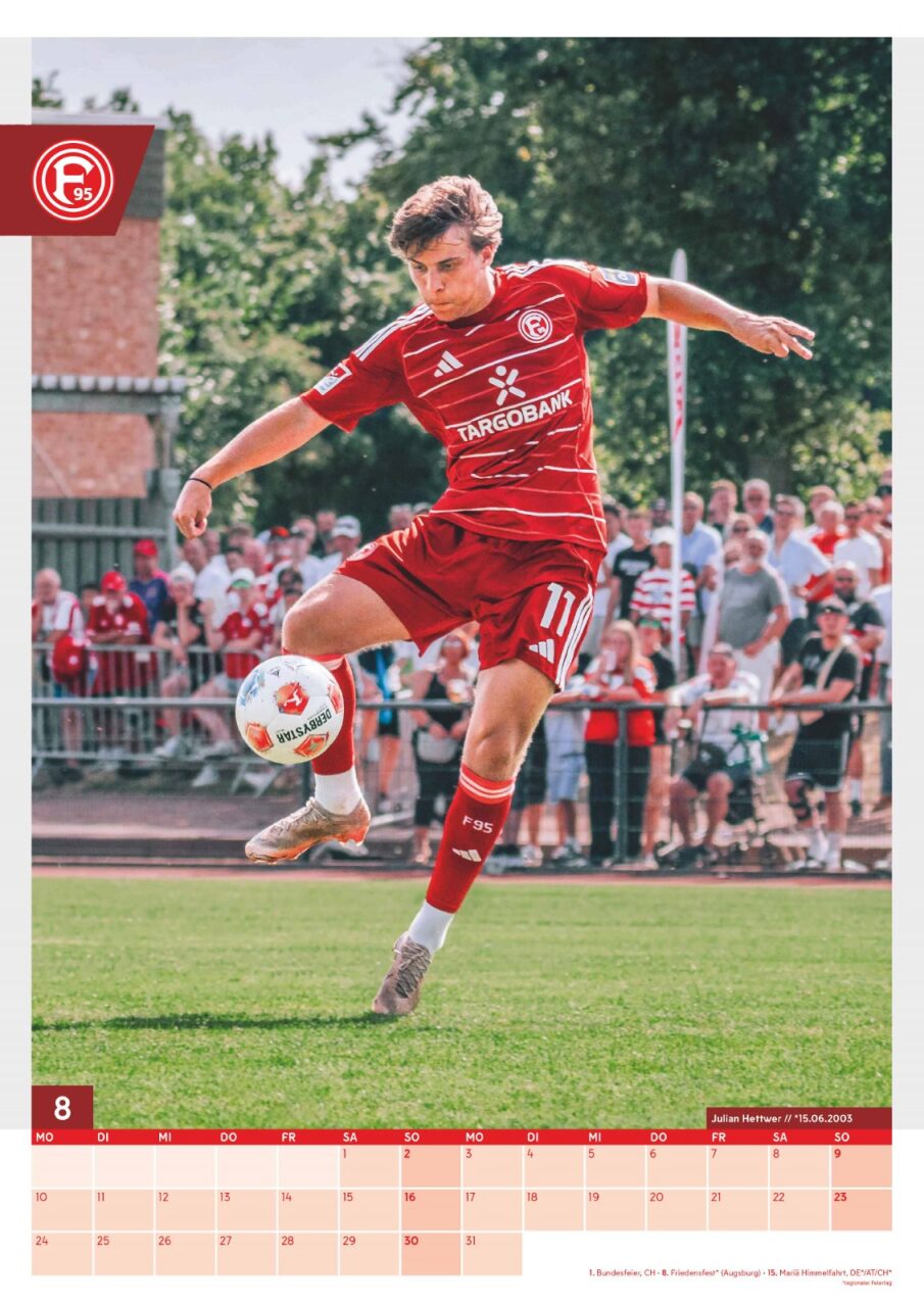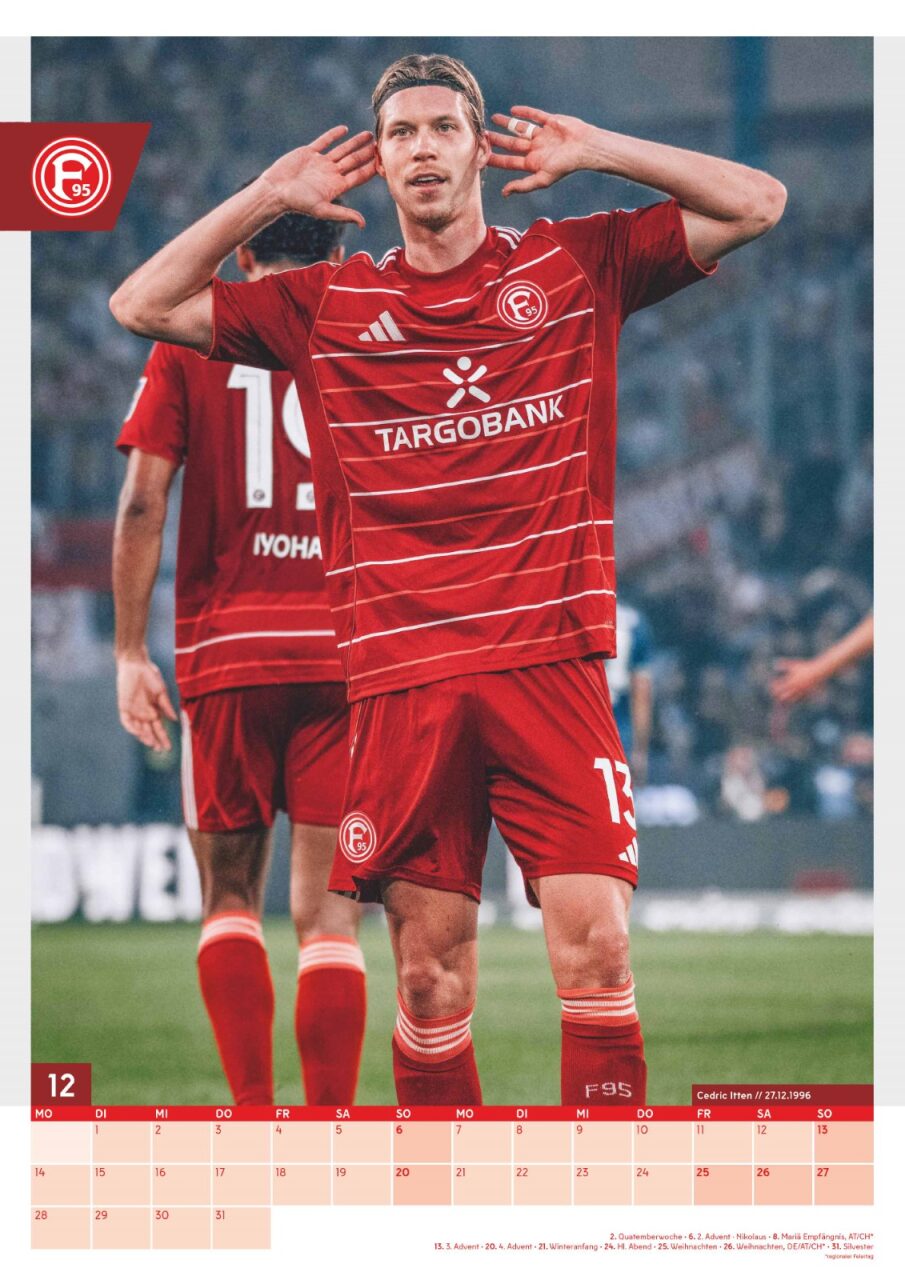 Für die Fans von Fortuna Düsseldorf gibt es auch in diesem Jahr den Wandkalender mit faszinierenden Fotografien von den spannendsten und erfolgreichsten Szenen der rot-weißen Fußballhelden. Der Kalender ist ein Muss für alle Fans der Düsseldorfer Fortuna! Jeden Monat lässt Sie eine neue Fotografie der Fußballstars deren spektakulärste Momente erneut erleben. Machen Sie Ihre Wand zur rot-weißen Wand – versetzen Sie sich in das Gefühl des Jubels und des Siegens im Stadion und staunen Sie jeden Monat neu über die hervorragenden Leistungen Ihrer Lieblingsspieler!