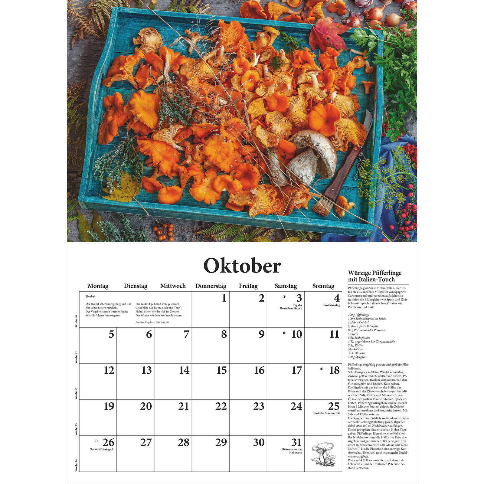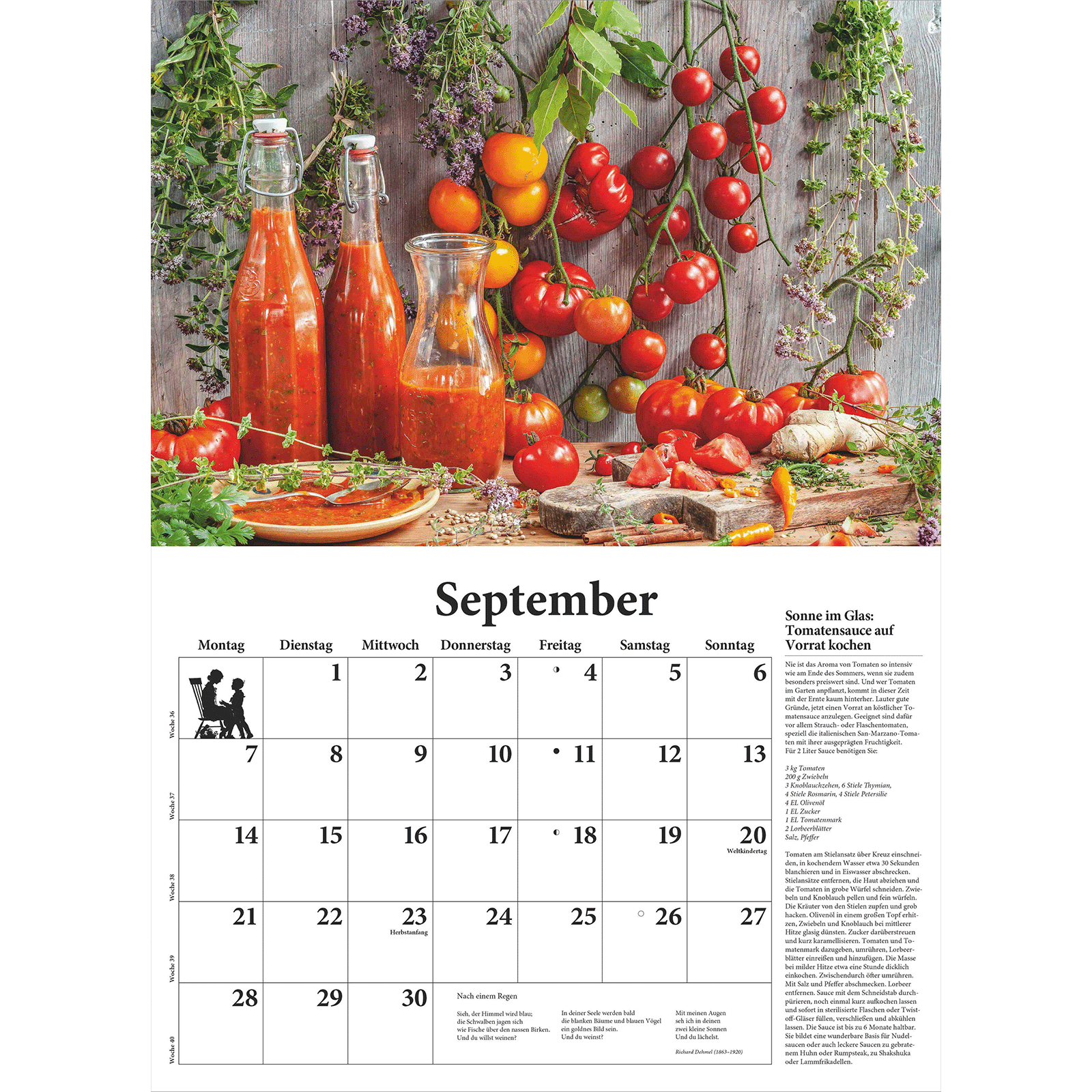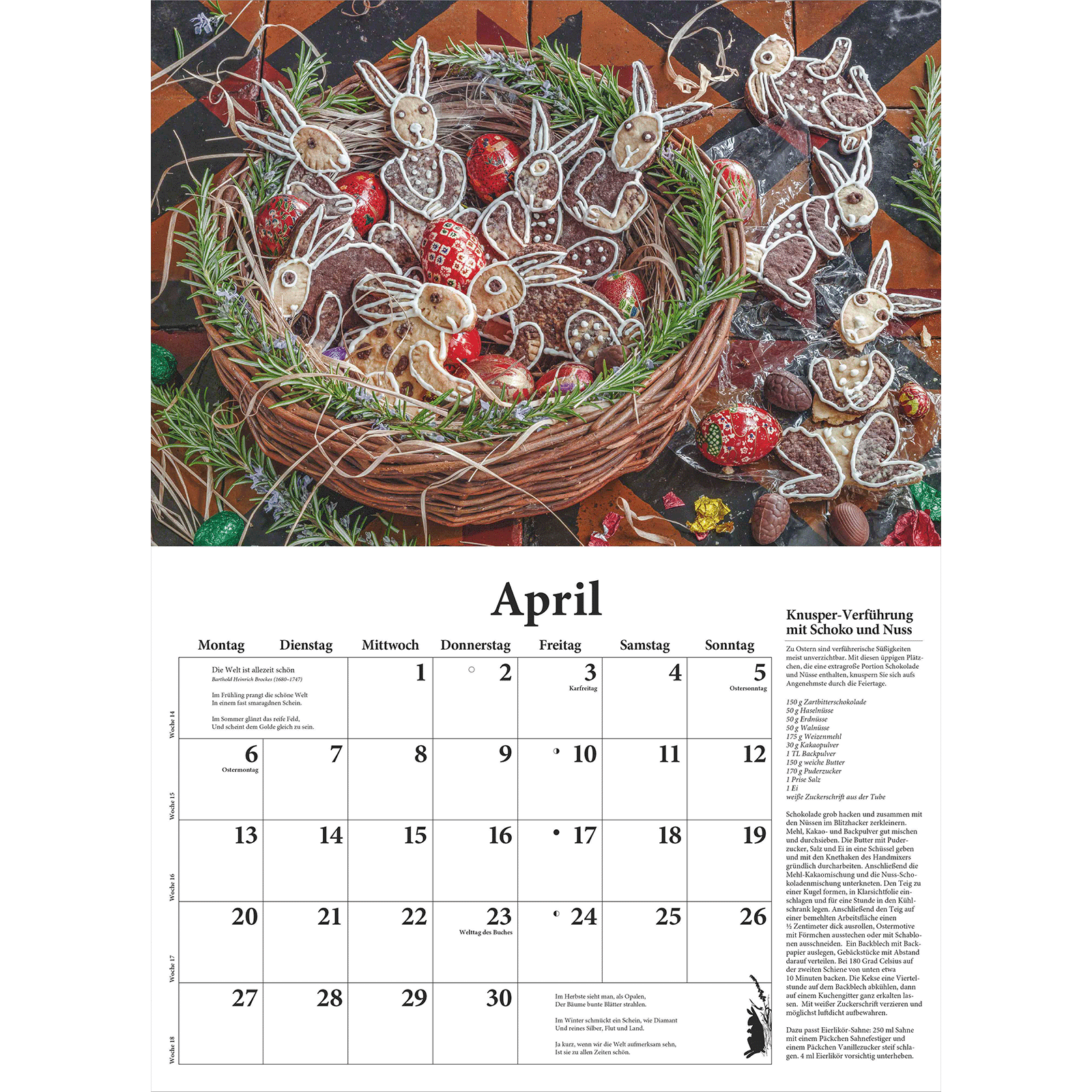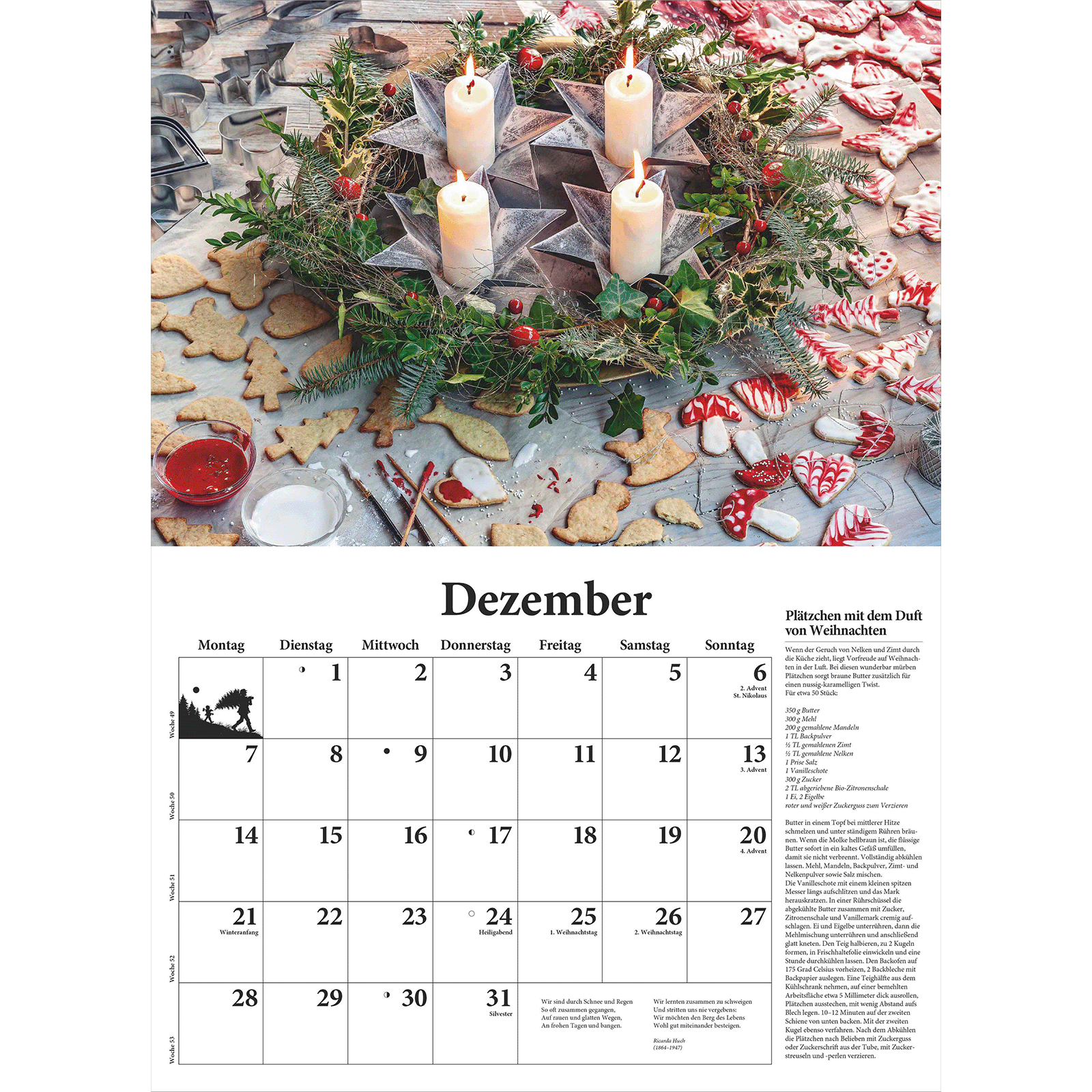 Die reizenden Schmuckvignetten und jahreszeitlichen Gedichten auf jedem Kalenderblatt tun ihr Übriges, damit dieser Broschürenkalender, geöffnet ist er 42 x 58 cm groß, zum Blickfang in der Küche wird und viel praktischen Nutzen bietet.